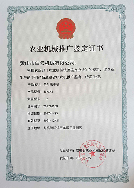 茶叶烘干机-鉴定证书