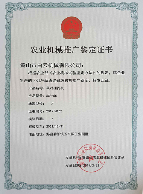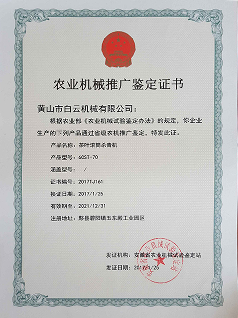 茶叶滚筒爱体育·aty(中国)官方网站-鉴定证书